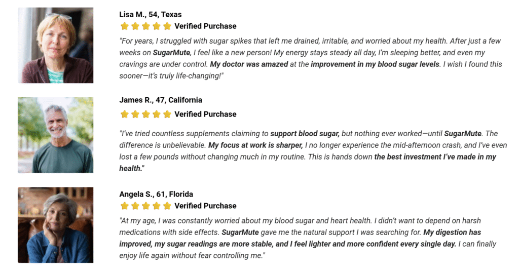 SugarMute is designed to support steady blood sugar and consistent energy throughout the day. Thousands of users have reported fewer cravings, sharper focus, and healthier sugar levels after taking it regularly. Most people notice positive changes within just a few weeks of daily use.